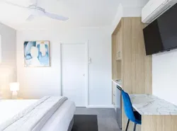 I am sending these 2 photos as on the screen shot you see I paid for a studio with patio and balcony and all I got was this pod for $500 per night. They lied about what my accommodation was to you. Probably because they had a big group staying as well they decided to shove me down in a "trades pod". Unacceptable! They need to give me a refund and booking.com can't trust them in the future! Thanks Kerry